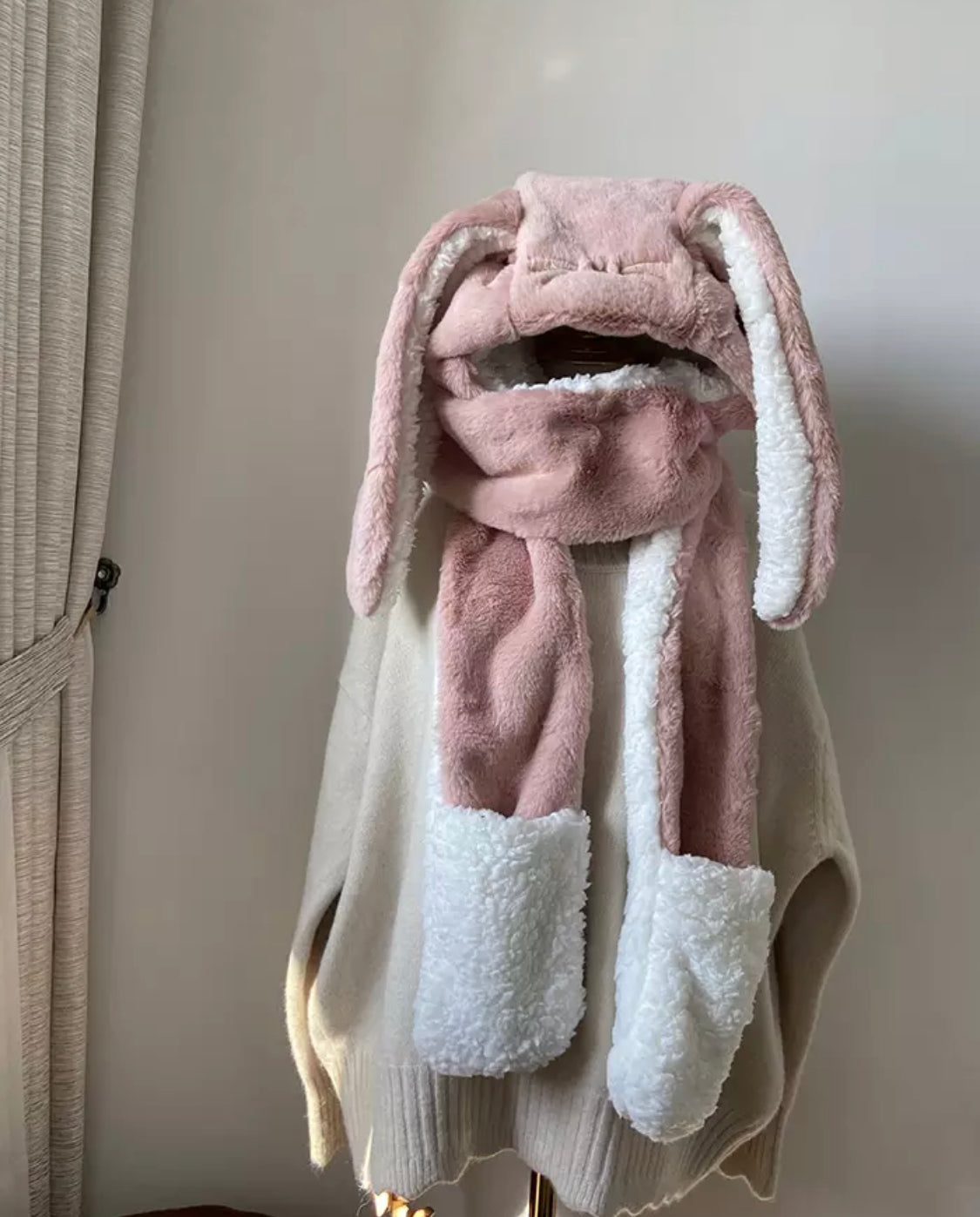 A super cute 3-piece ( scarf , hat and gloves) bunny hat with big ears! The material is soft and comfortable, and it is very warm,...