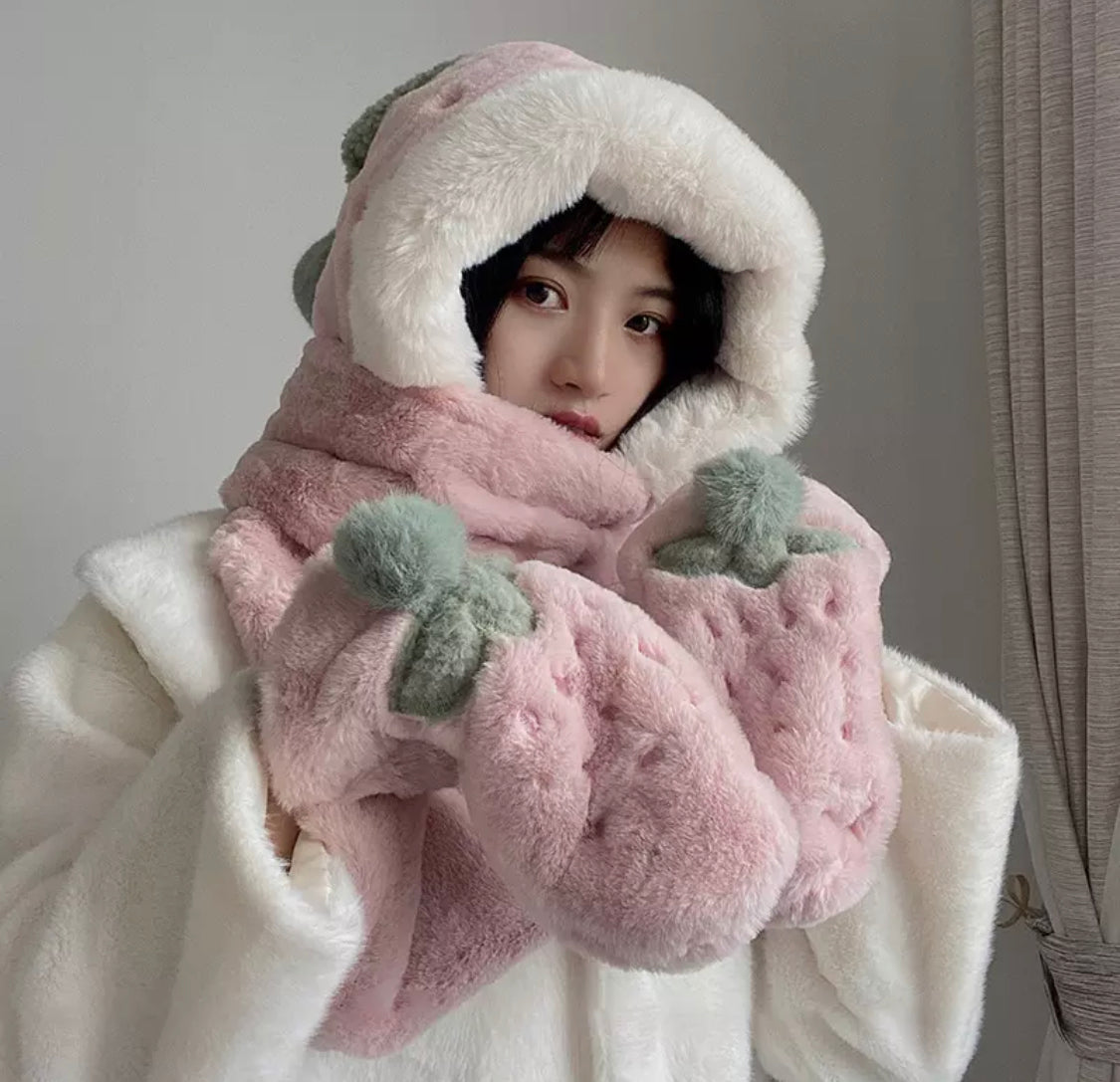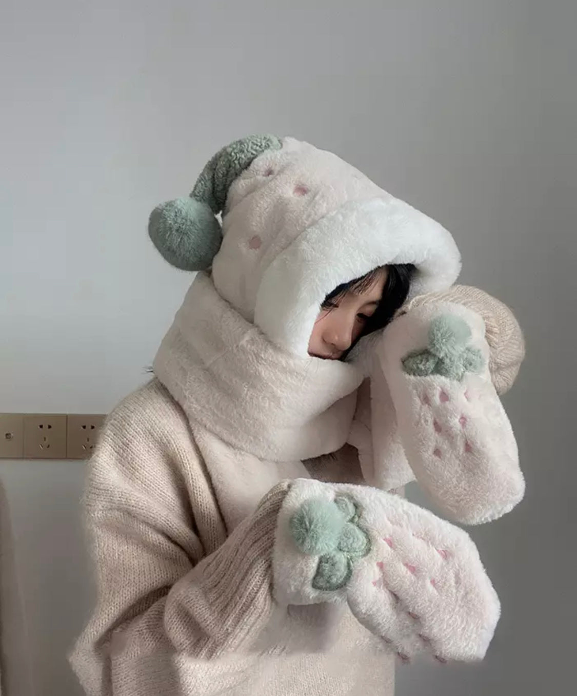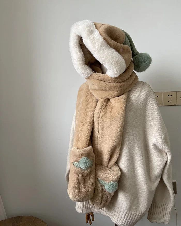 A super cute 3-piece ( scarf , hat and gloves) bunny hat with big ears! The material is soft and comfortable, and it is very warm,...