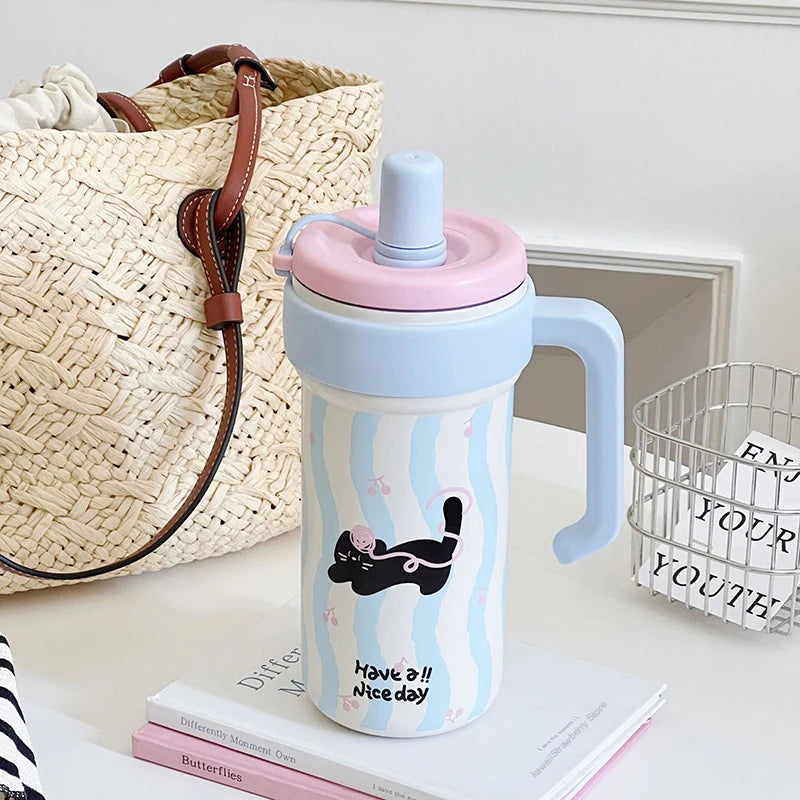 Highlights 1. The Thermos cup is so cute and has high quality.2. Made of 304 stainless steel liner, thick, healthy and durable,3.This thermal cup can keep...