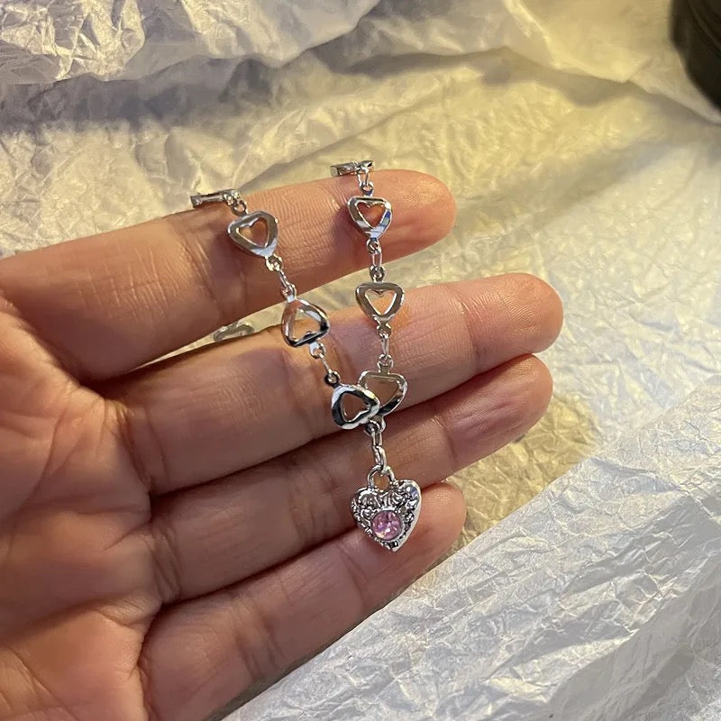 This necklace is a stunning piece of jewelry that is perfect for adding a touch of elegance and charm to any outfit. The necklace is made from high-quality silver that is both durable and long-lasting. The centerpiece of the necklace is a beautiful pink heart that adds a pop of color and a touch of femininity to the overall design. The pendant is delicately crafted and perfectly sized, making it ideal for everyday wear or for special occasions. The necklace comes with a sturdy chain that is adjustable, ensuring a comfortable fit for any neck size. Whether you are looking to treat yourself or give a gift to someone special, this necklace is a great choice.