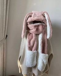 A super cute 3-piece ( scarf , hat and gloves) bunny hat with big ears! The material is soft and comfortable, and it is very warm, even in the cold winter, you are not afraid of having this hat!