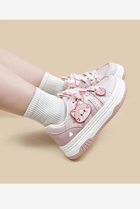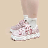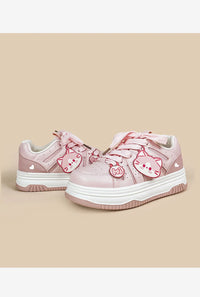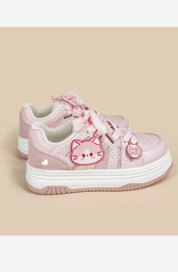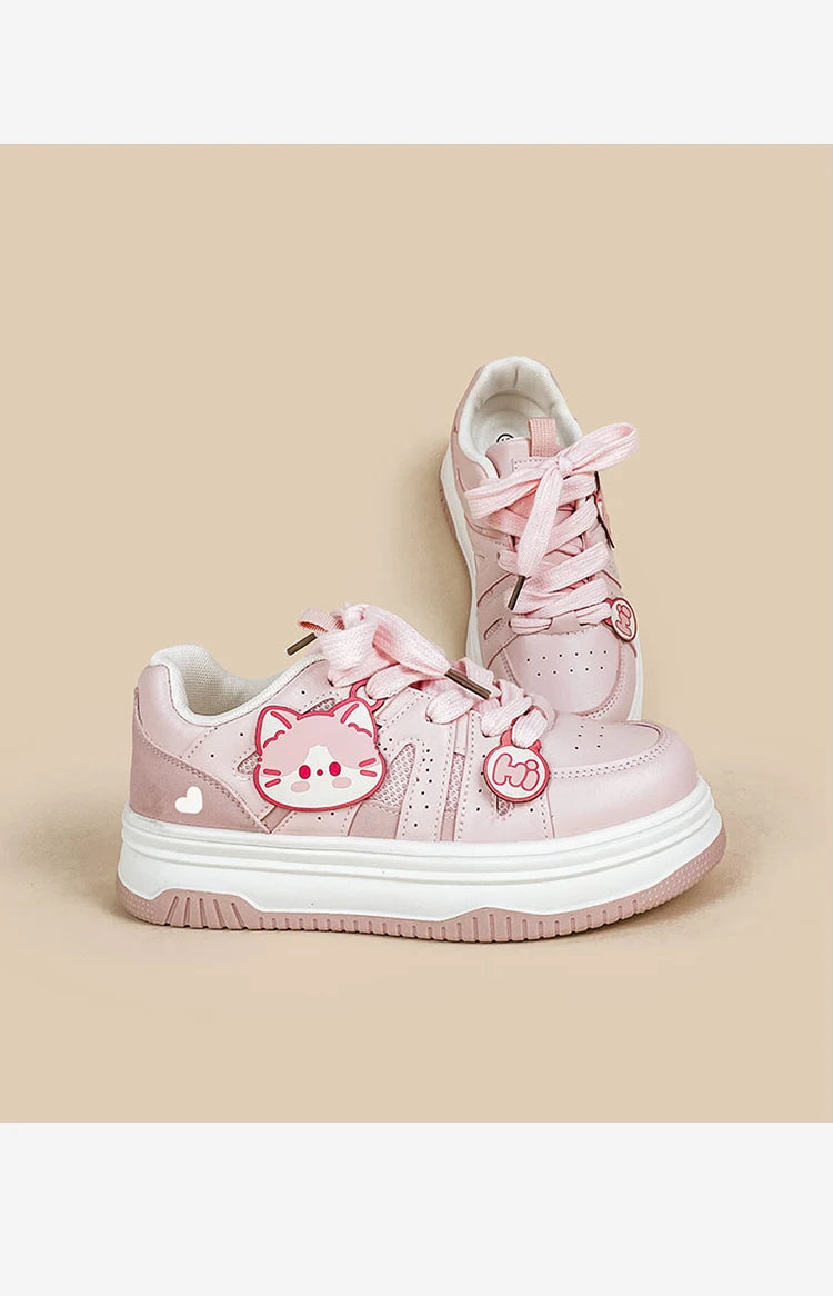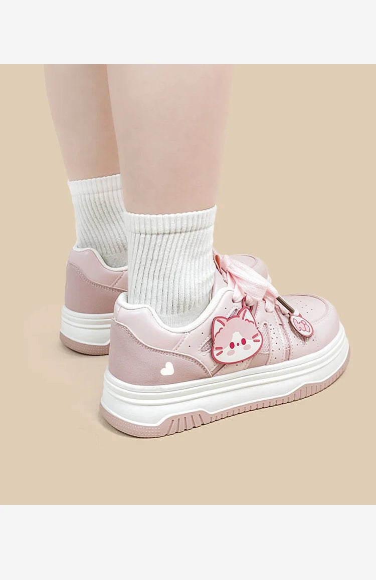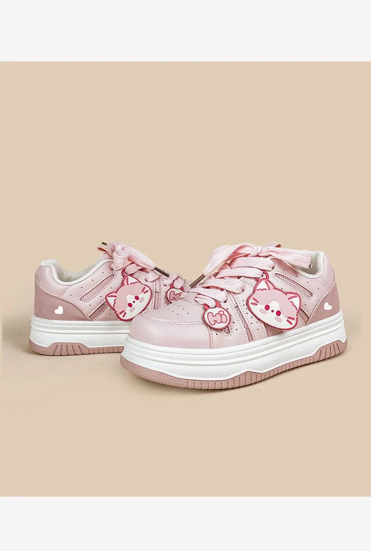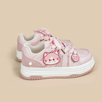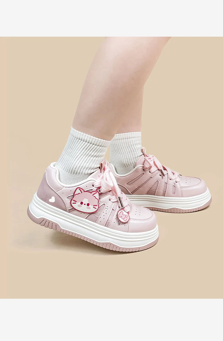 Add some adorable attitude to your step with these pastel pink sneakers featuring a kawaii cat charm and subtle heart details. Made with a smooth microfiber upper and breathable cotton lining, these cuties keep you comfy all day. The soft latex insole gives your feet a cushiony hug, while the durable rubber sole supports everyday wear.