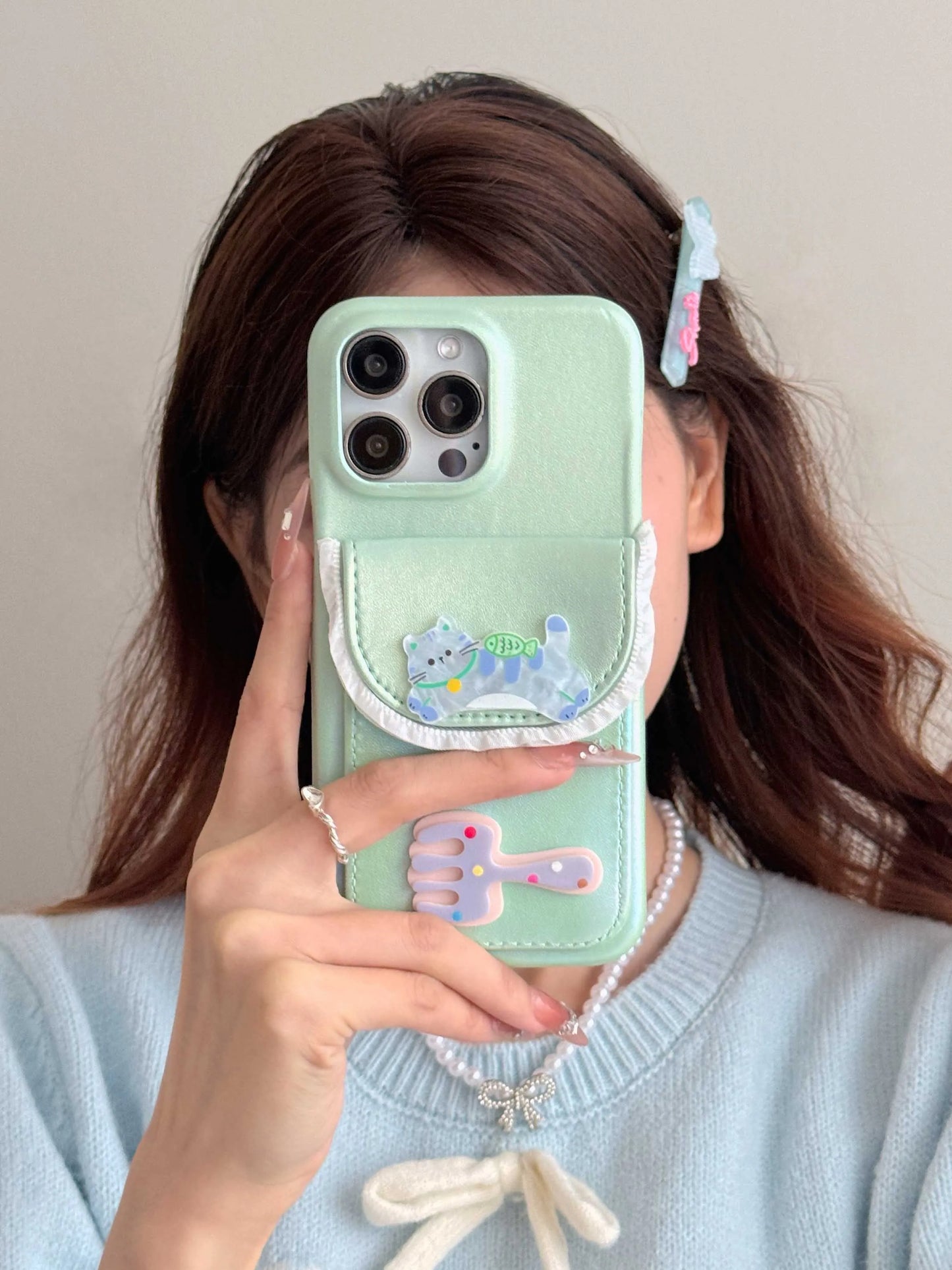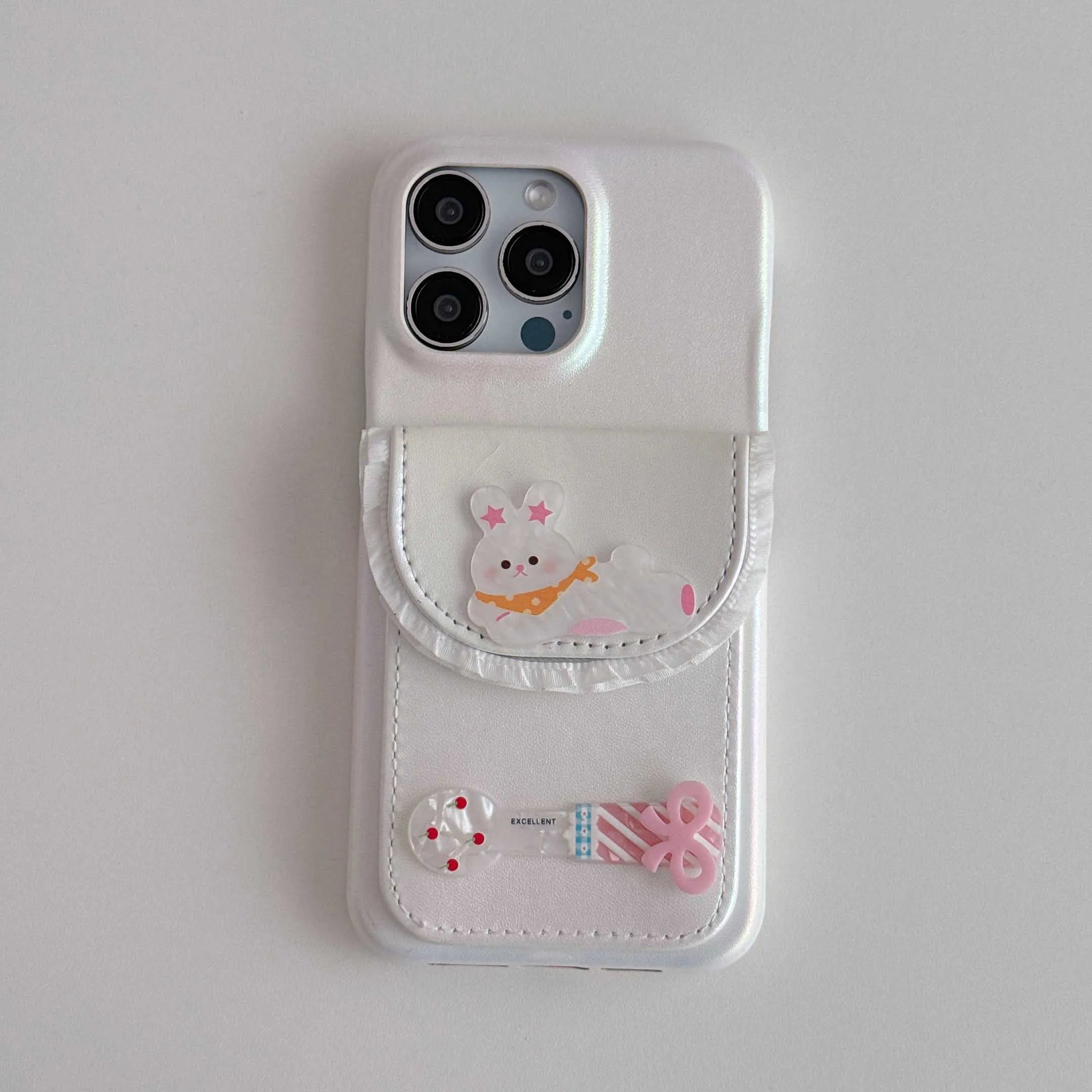 The dreamy gradient colors blend seamlessly from soft pastels to vibrant hues, creating a fairytale-like aesthetic that feels like stepping into an enchanted forest. And the clever card pocket adds a touch of practical magic perfect for keeping your essential cards close while maintaining that kawaii charm.