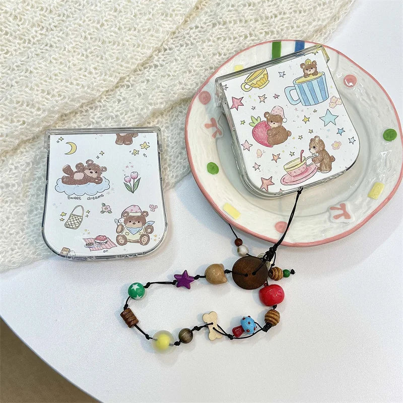 The clever hinge protection creates a practical yet playful look each time you flip your phone open, your bear buddy is there to greet you! Complete with a stylish chain accessory, this case isn't just protection it's a fashion statement that lets you wear your phone like a trendy mini-purse, keeping it secure and accessible wherever your adventures take you.