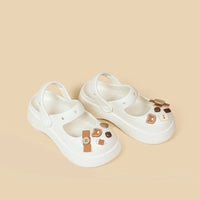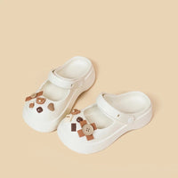These white clogs are the perfect addition to any outfit. The minimalist design allows the cute flower on the top of each shoe to really stand out. The clogs are made with a sturdy material that provides great support and comfort for your feet. The slip-on design makes them easy to put on and take off, and the durable sole ensures that they are suitable for both indoor and outdoor wear. The white color of the clogs makes them versatile and easy to pair with any outfit. These clogs are sure to become a staple in your wardrobe.
