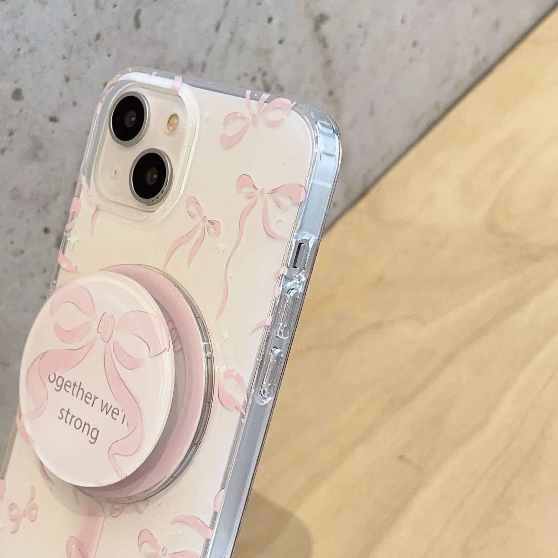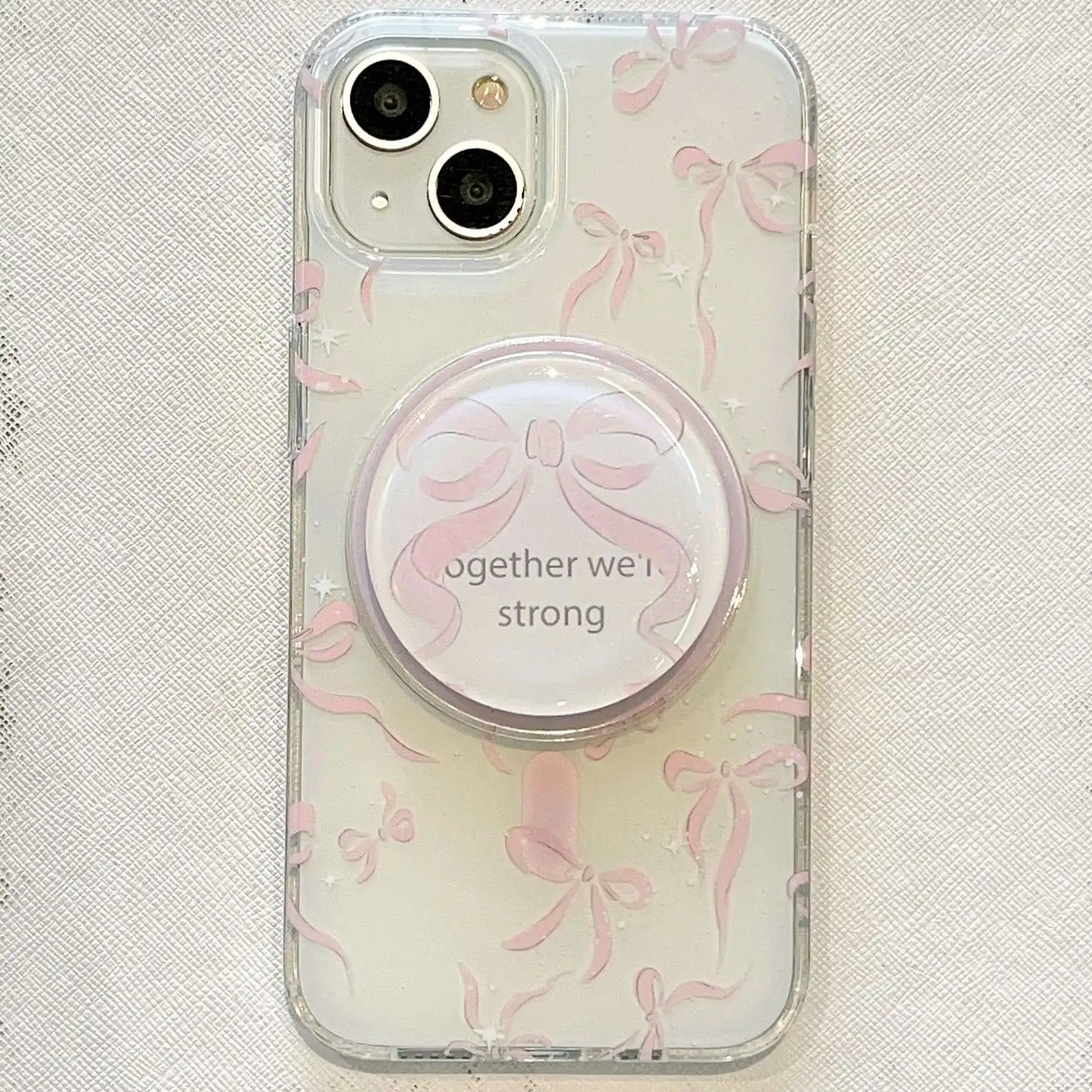 The dainty pink bow sits elegantly atop a crystal clear acrylic back, creating a perfect balance of whimsy and refinement. Like a tiny gift your phone wears daily, this bow adds a touch of feminine grace to your tech essentials,  a subtle reminder to find joy in the little things.