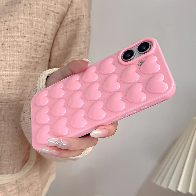 Each 3D bubble heart creates a sensory wonderland beneath your fingertips, a little moment of joy with every text, call or scroll. The soft silicone cradles your precious iPhone in cloud like protection, while the pop-able heart texture offers a soothing fidget experience during those long calls or waiting moments.