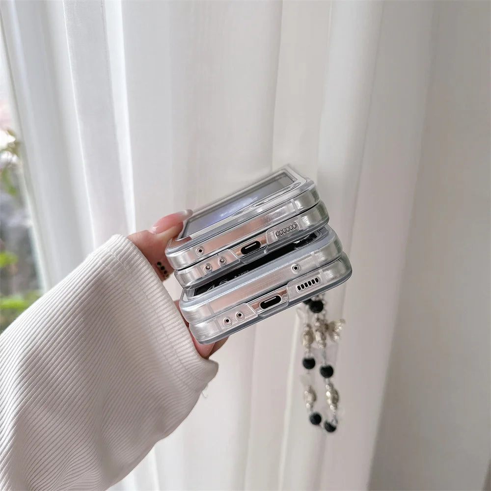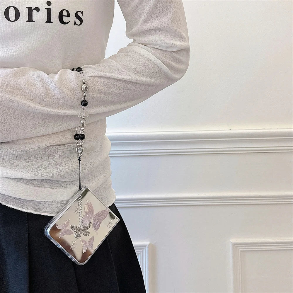 Each case features the most adorable butterfly motifs dancing around a built-in mirror that's perfect for quick touch-ups and selfie checks on the go! The elegant wrist chain bracelet attachment adds both style and functionality perfect for keeping your precious device secure while adding a touch of luxury jewelry to your ensemble. The clever mirror design transforms your phone into a multi-functional beauty companion that's as practical as it is charming.