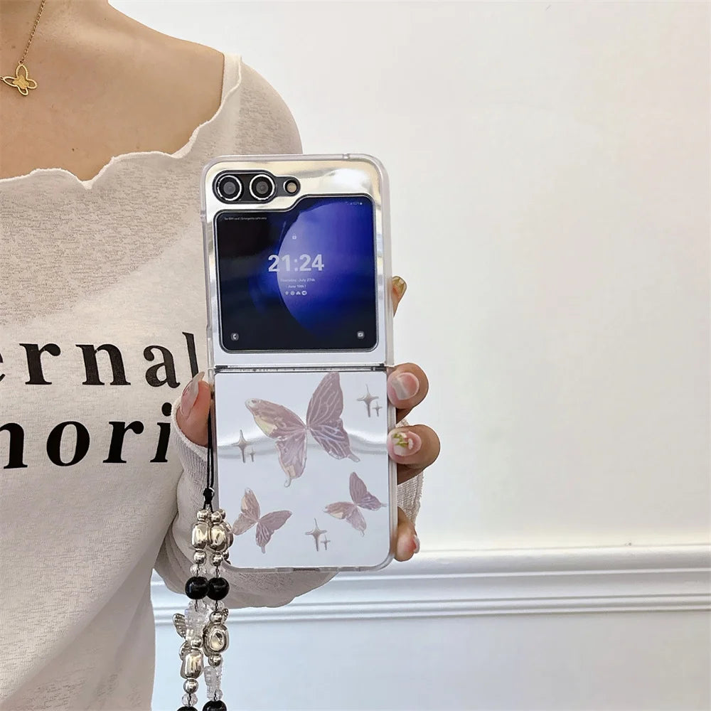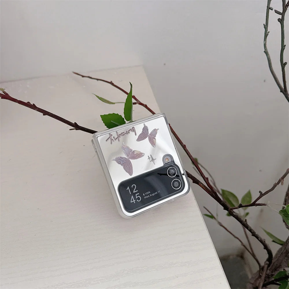 Transform your Samsung Galaxy Z Flip into a magical beauty accessory with our Butterfly Beauty Mirror Case! This isn't just a phone protector it's a pocket sized vanity that brings the enchantment of fluttering butterflies and practical elegance to your cutting-edge foldable device.