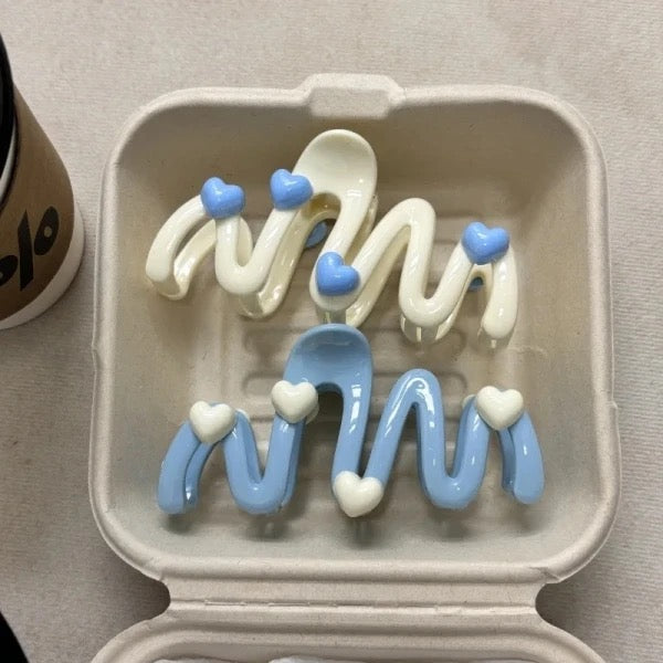Add a splash of whimsy to your updo with the Candy Wave Hair Claw—a wavy, zigzag clip decked out in soft pastel tones and sweet 3D hearts. With its fun sculpted shape and secure grip, this claw is perfect for playful half-up styles or soft, romantic buns. Light but sturdy, it brings instant charm to casual outfits, soft-girl aesthetics or kawaii fashion .