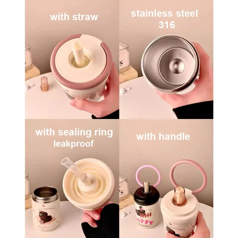 The innovative handle design not only makes carrying easy. The leak-proof construction ensures worry-free transport, while the convenient straw makes sipping effortless. Available in lovely colors including pink, blue, purple, and coffee.