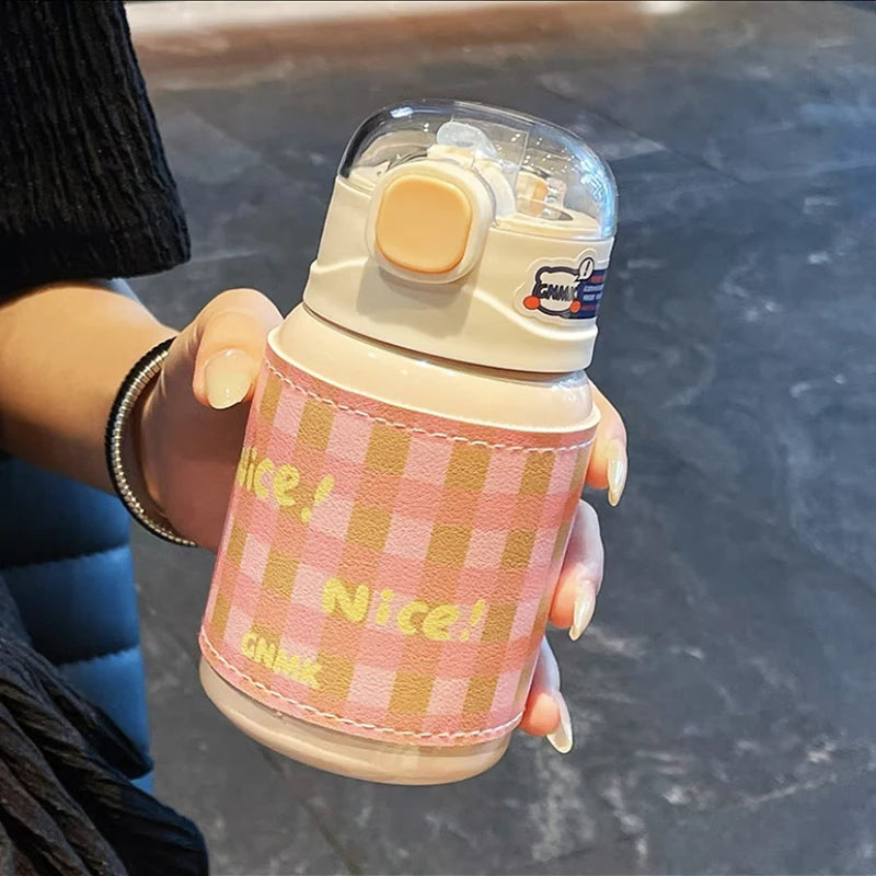 The leak-proof design ensures worry-free transport in your bag, while the included PU cover provides extra insulation and protection. Available in two convenient sizes - 350ml for smaller hands and 450ml for longer hydration needs. Choose from lovely colors including green, pink, and red.