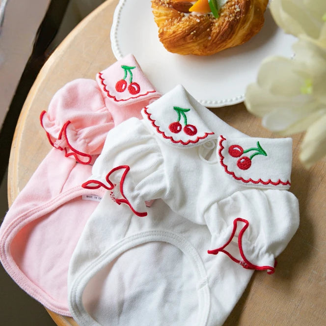 Dress your precious pup in sweet kawaii elegance with our Cherry Bubble Sleeve Top! This utterly adorable garment features charming cherry wave edges and the most delightful bubble sleeves that transform your furry friend into a walking piece of kawaii art.
