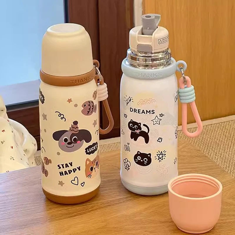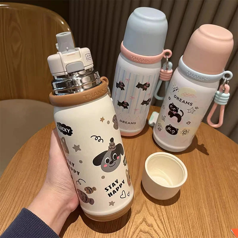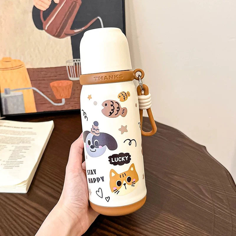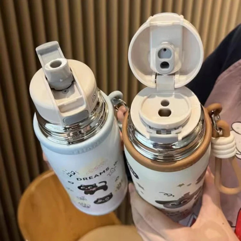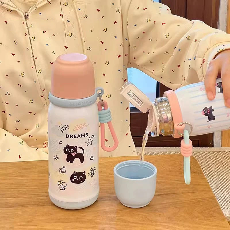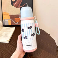 Stay hydrated in adorable kawaii style with our Kitty Companion Thermal Water Bottle! This charming 500ml vacuum insulated bottle features an irresistible cat design with convenient straw and hand rope that transforms your daily hydration routine into a delightful experience, perfect for cat lovers and anyone who appreciates functional kawaii drinkware.
