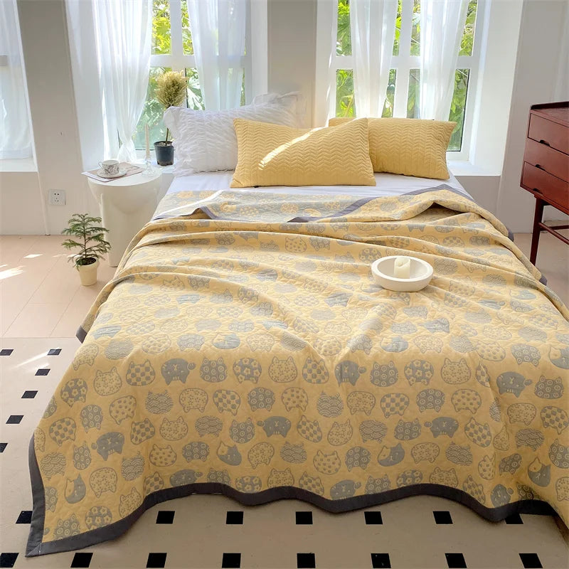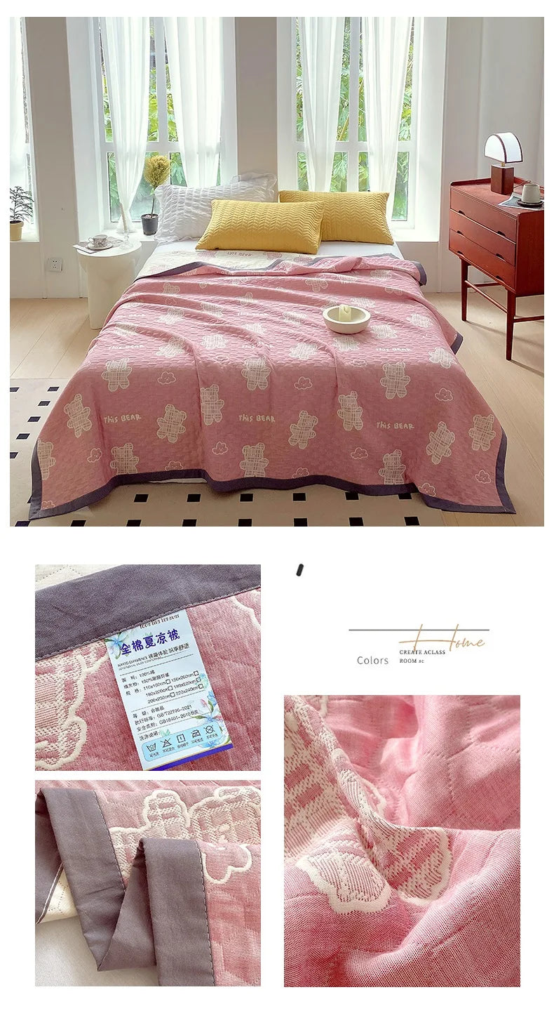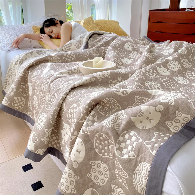 Perfect for summer evenings or year-round layering, the lightweight pure cotton thread construction keeps you comfortable without overheating. The charming prints add personality to any space, making them ideal as decorative throws for your sofa or cheerful bedspreads.
