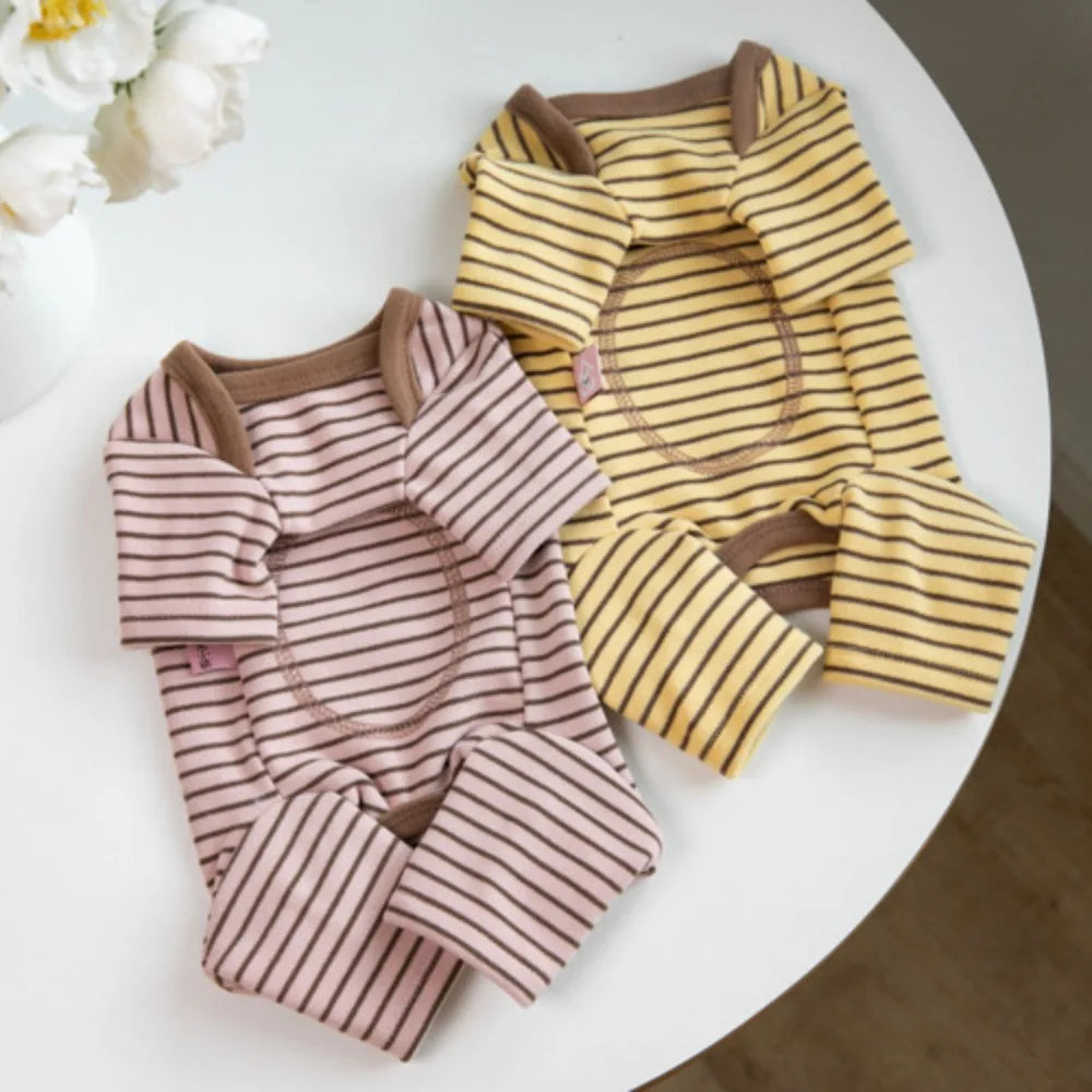 Imagine the delighted squeals as your little one waddles around in their striped pajamas, looking like they're ready for the sweetest sleepover! The full-coverage design with four leg openings ensures maximum warmth and comfort, while the playful striped pattern adds an irresistible touch of kawaii charm to naptime and playtime alike.