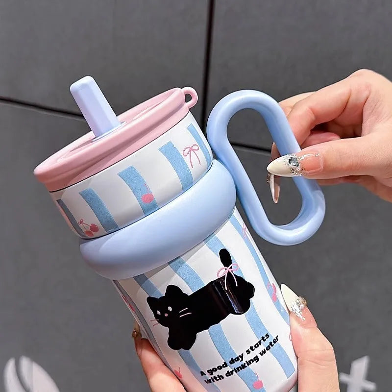 Start every morning with joy using our Good Day Thermal Tumbler! This charming 650ml vacuum insulated tumbler features adorable kawaii designs with convenient straw and handle that transforms your daily coffee and tea routine into a delightful experience, perfect for spreading positivity and anyone who appreciates functional kawaii drinkware.