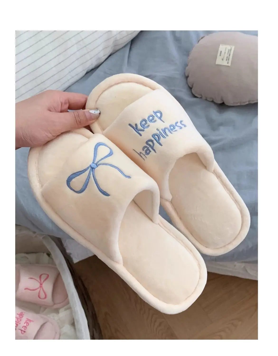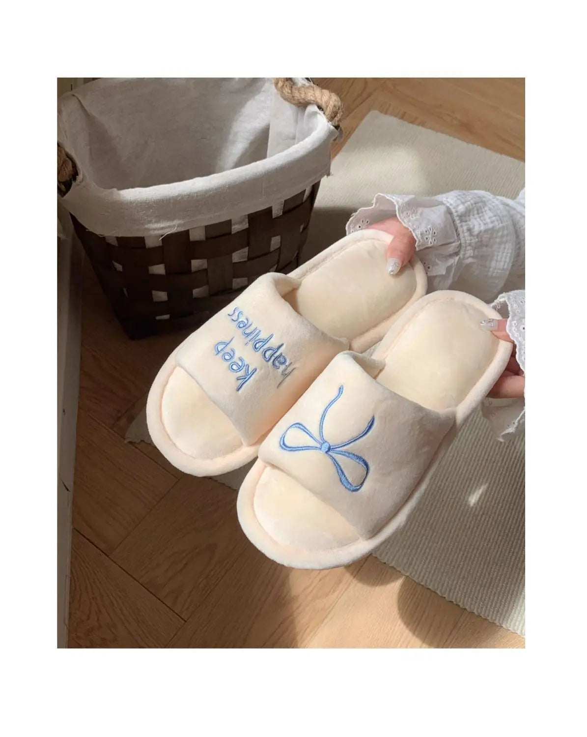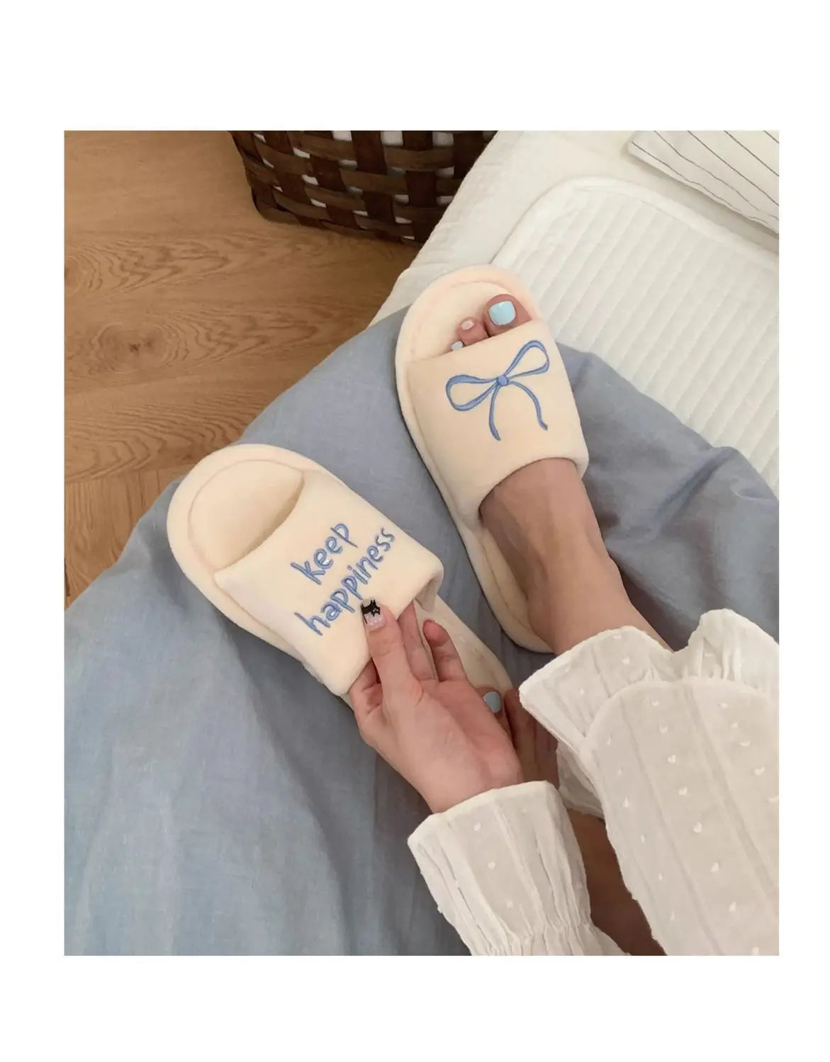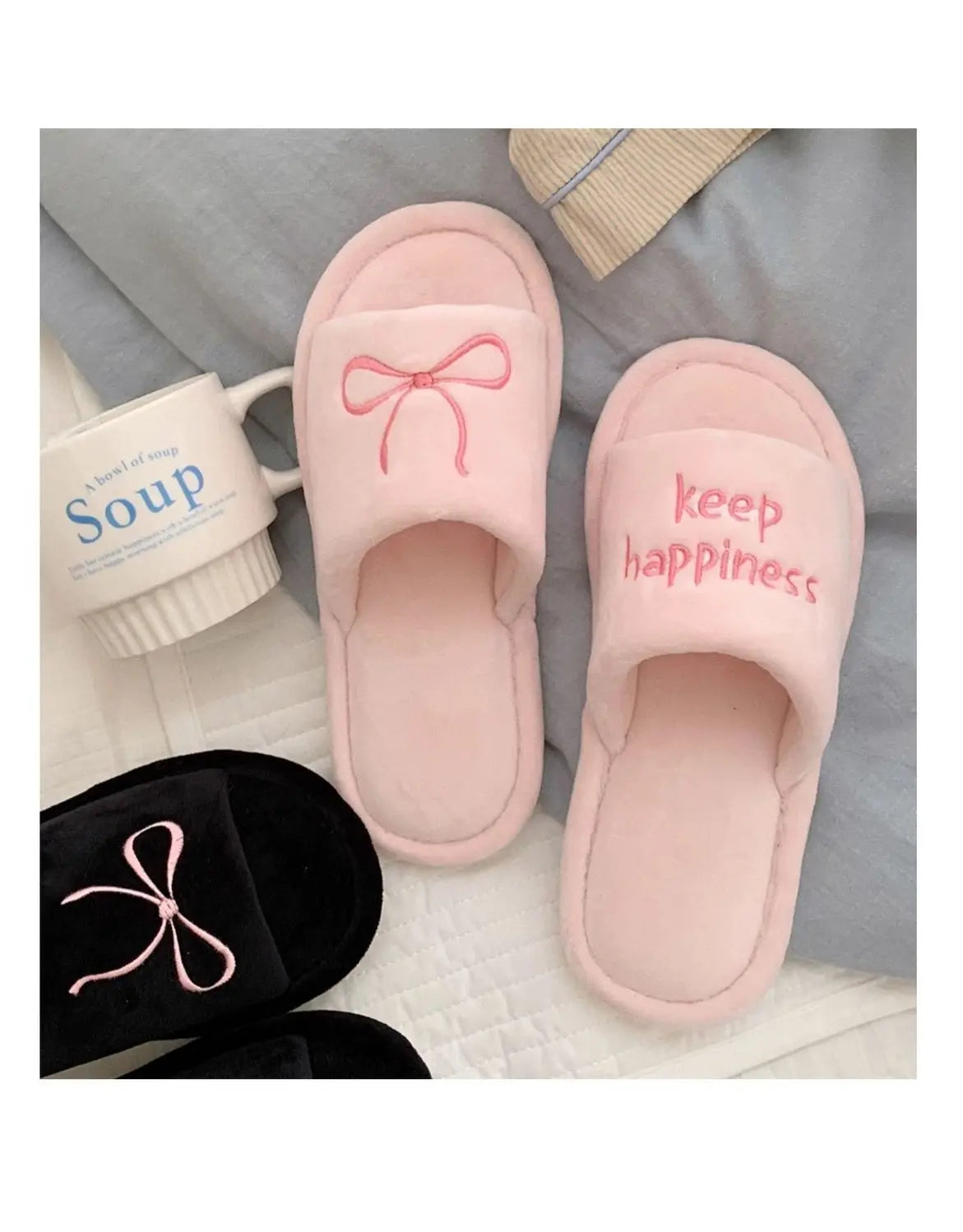 Step into your soft spot. Happiness is made for slow mornings, cute routines and quiet joy. Lightweight, cozy and effortlessly adorable, they wrap your feet in comfort while the dainty bow adds a touch of cheer. Because happiness really does start from the ground up.