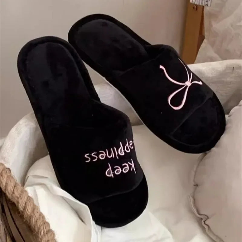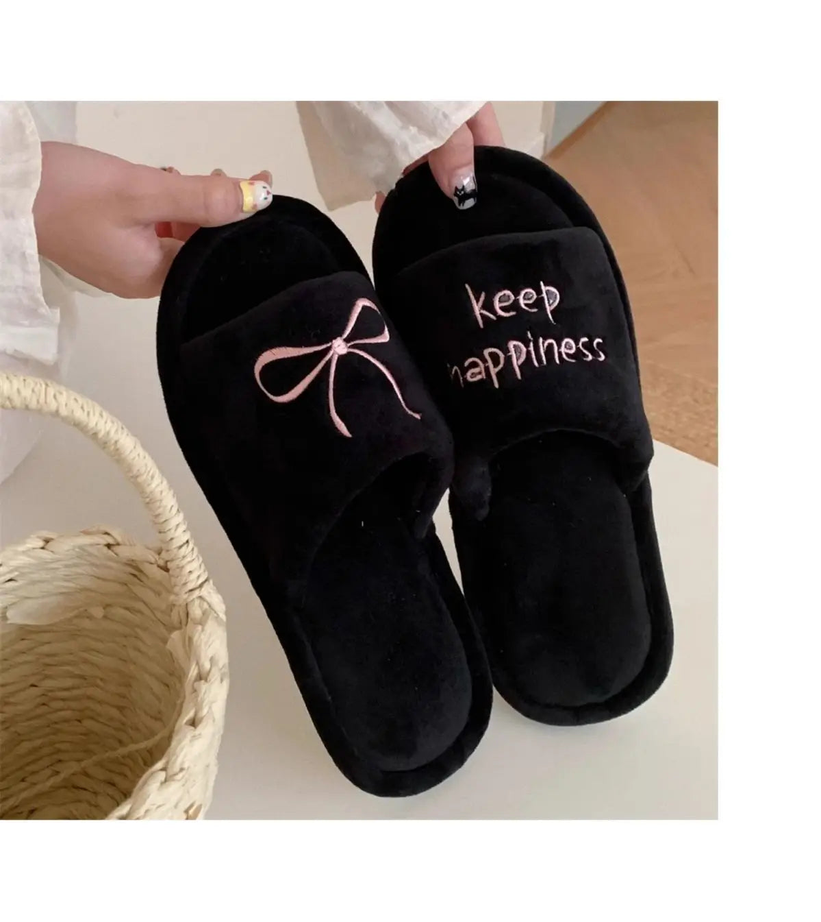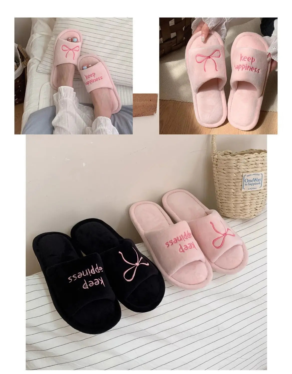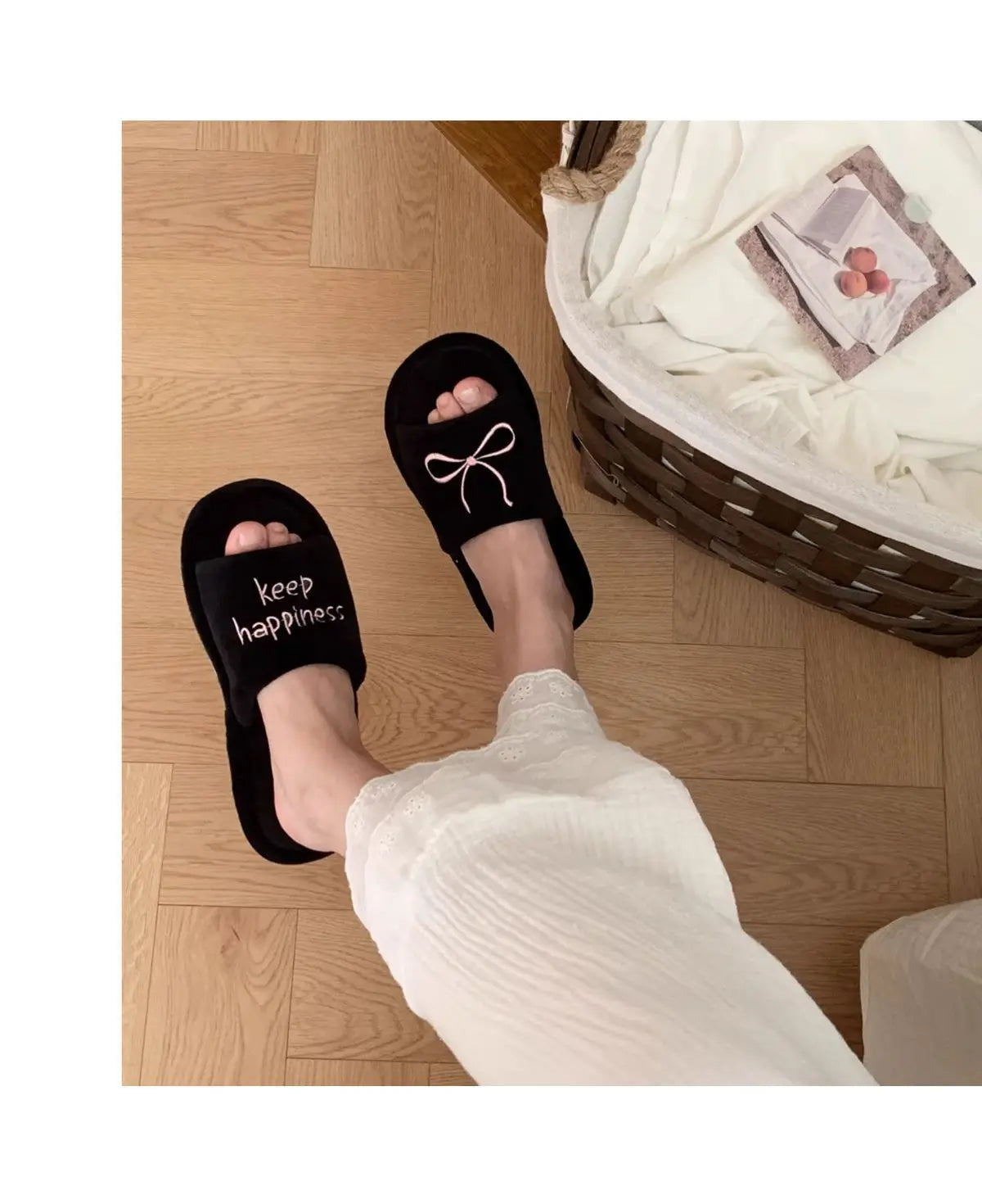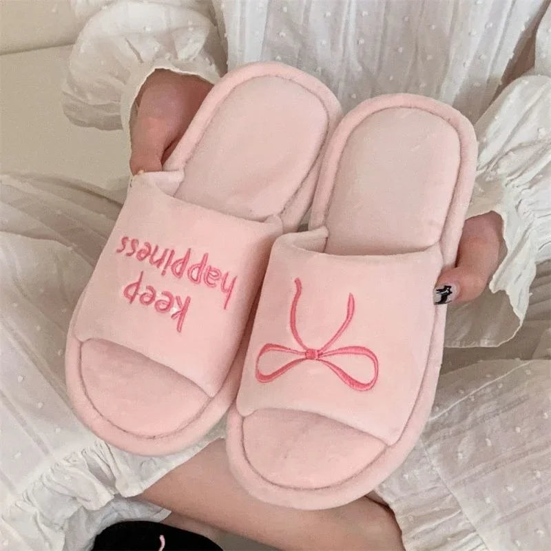 Step into your soft spot. Happiness is made for slow mornings, cute routines and quiet joy. Lightweight, cozy and effortlessly adorable, they wrap your feet in comfort while the dainty bow adds a touch of cheer. Because happiness really does start from the ground up.