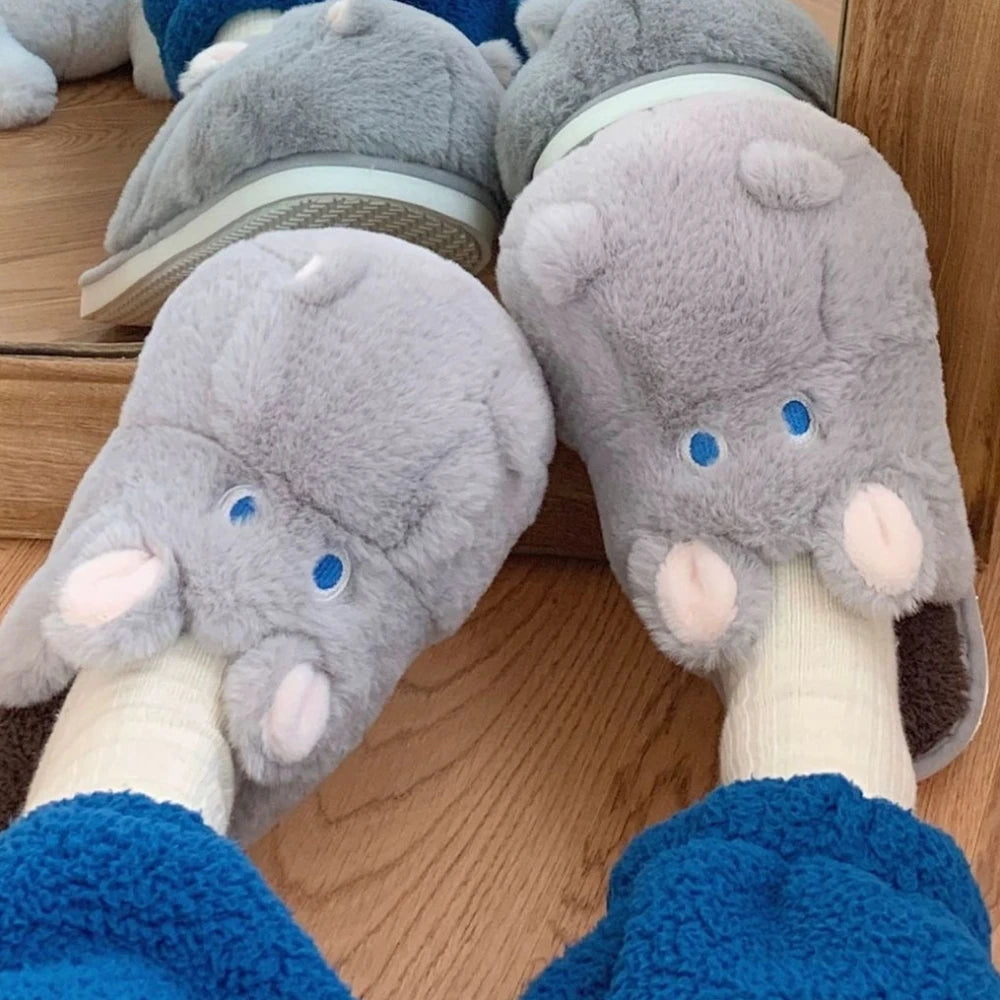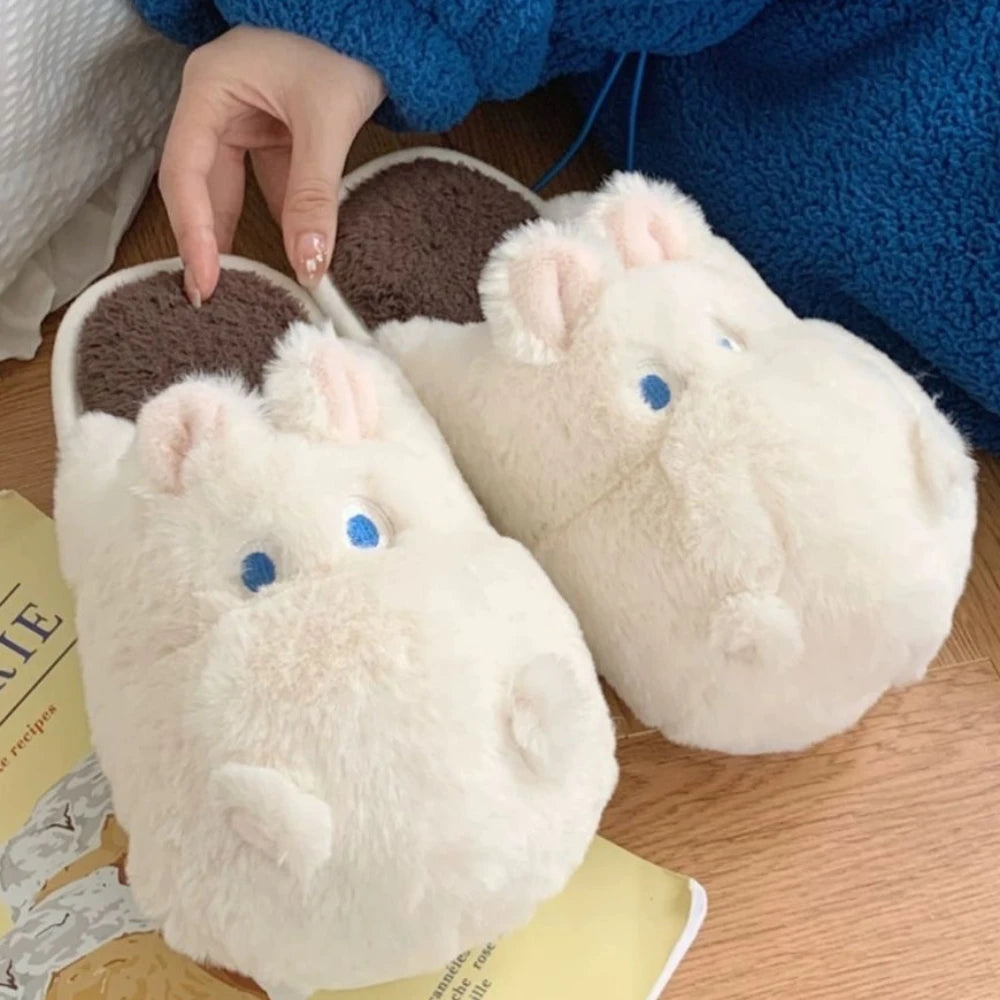 Chubby, fluffy, and full of charm these plush hippo slippers are the definition of comfort cuteness. With their round little ears and soft pastel body, they’re your new favorite winter lounge buddy.