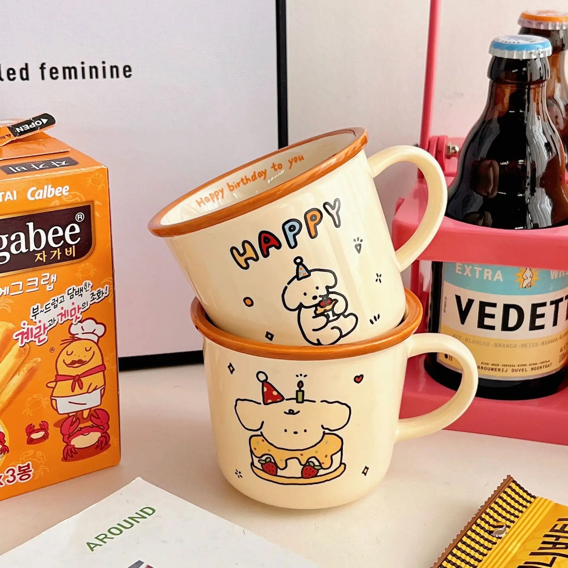 Kawaii happy mug set is a cute and high-quality coffee mug made of ceramic material with a capacity of approximately 350ml. The mug has an original design that is both sustainable and fashionable, making it an excellent choice for those who care about the environment. In addition to drinking coffee, the mug can also be used for water, tea, beer, milk, and as a breakfast or lovers cup. The beige color of the mug adds to its charm and makes it a perfect gift for friends, lovers, or even for yourself. However, since it is made of ceramic material, it is normal to have some flaws, and the manufacturer hopes for your understanding.