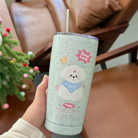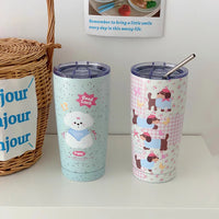 The dual-drinking design offers maximum convenience - sip directly from the tumbler or use the included straw for easy enjoyment. The portable size (7×17.5cm) makes it perfect for school, office, travel, or home use. The adorable puppy theme brings joy to your daily routine and makes it an ideal gift for dog lovers. Available in lovely colors including pink and green.