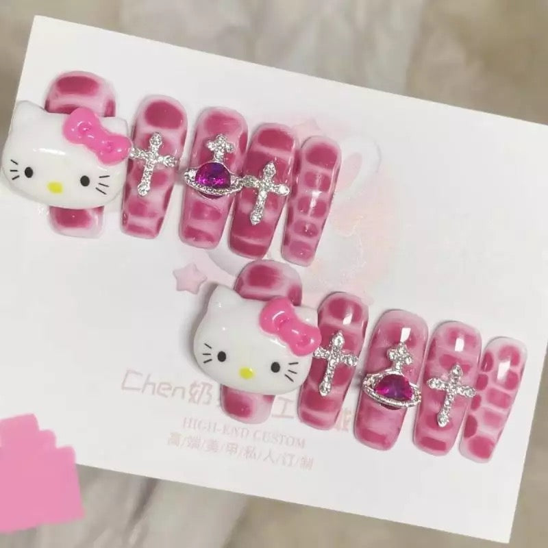 1*10 pieces handmade false nails+1 piece glue+ 1 piece nail file+1 piece wood Stick+1 piece alcohol pad+24 pieces jelly glue sticker
