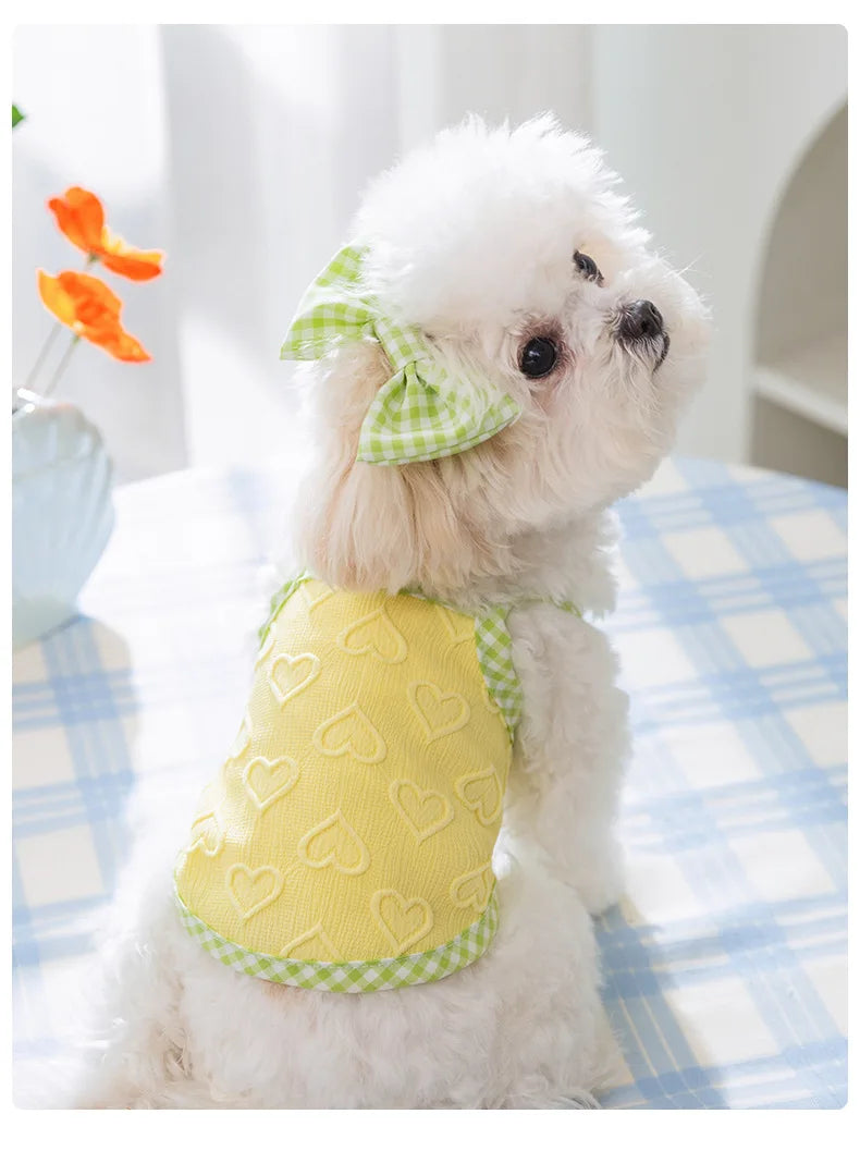 Dress your precious pup in pure sweetness with our Love Relief Tank Top! This adorable spring and summer essential features charming raised love textures and the cutest bow strap details that transform your furry friend into a walking bundle of kawaii joy.