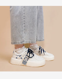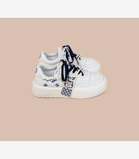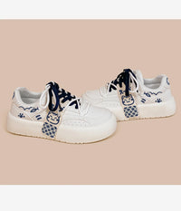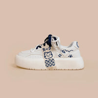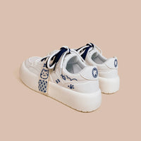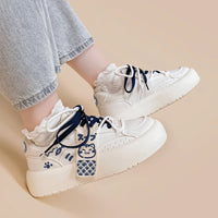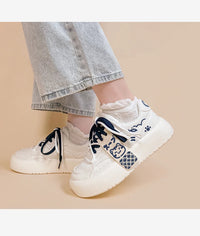 Step into charm with our Lucky Neko Sneakers — a clean, kawaii blend of playful energy and Japanese street-style vibes. Featuring a cheeky cat tag and subtle paw print motifs, these lace-ups are comfy, cute and easy to pair with casual fits. The mix of white and navy makes them pop without trying too hard!