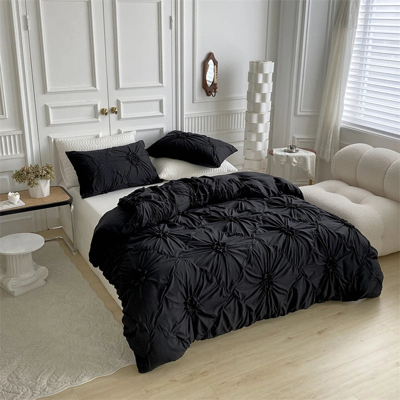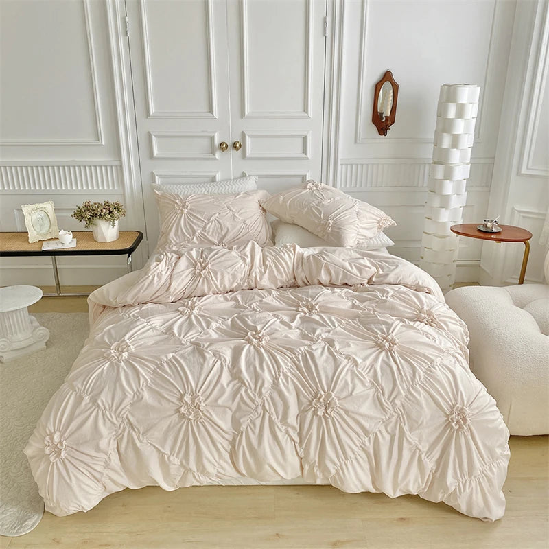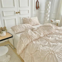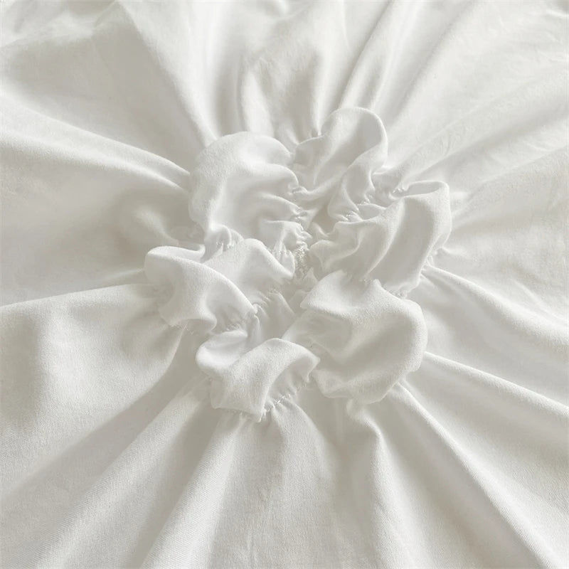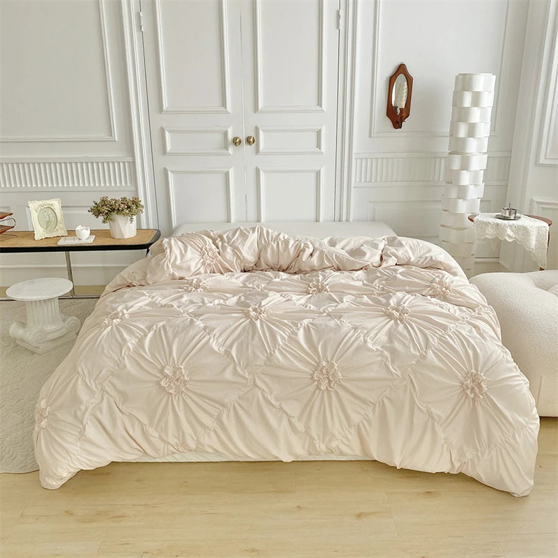 Wrap yourself in bloom with the Petal Puff Bedding Set ~ a plush, quilted duvet cover featuring gathered ruched “flower” details across a dreamy  base. With a soft, cloudlike texture and delicate floral texture work, this set brings a sophisticated yet cozy finish to any feminine, elegant or cottagecore bedroom.