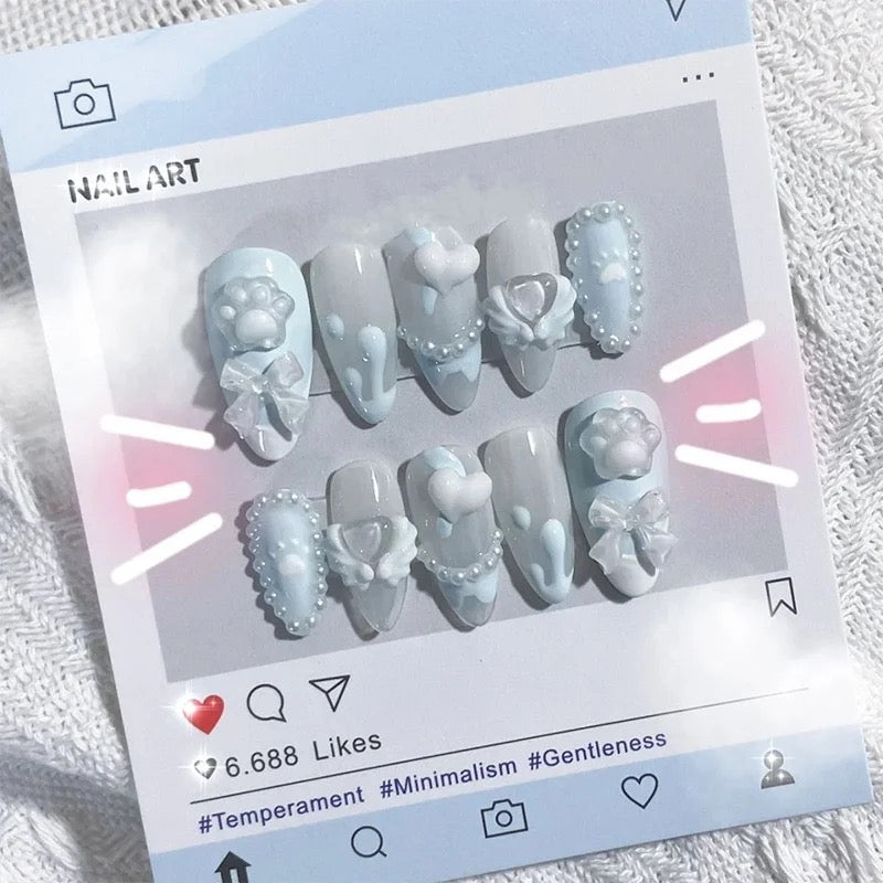 1*10 pieces handmade false nails+1 piece glue+ 1 piece nail file+1 piece wood Stick+1 piece alcohol pad+24 pieces jelly glue sticker
