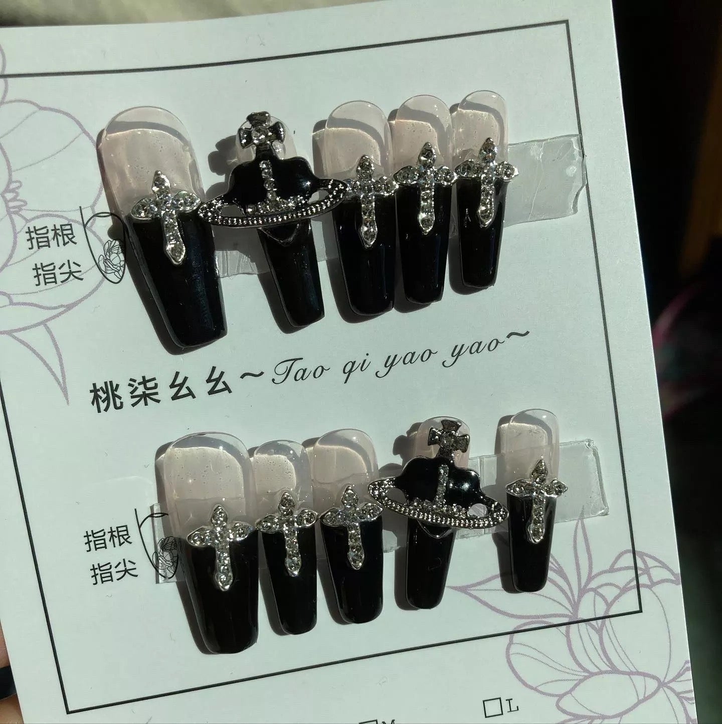 Step2: Take the sticker out and place it to the false nail tip